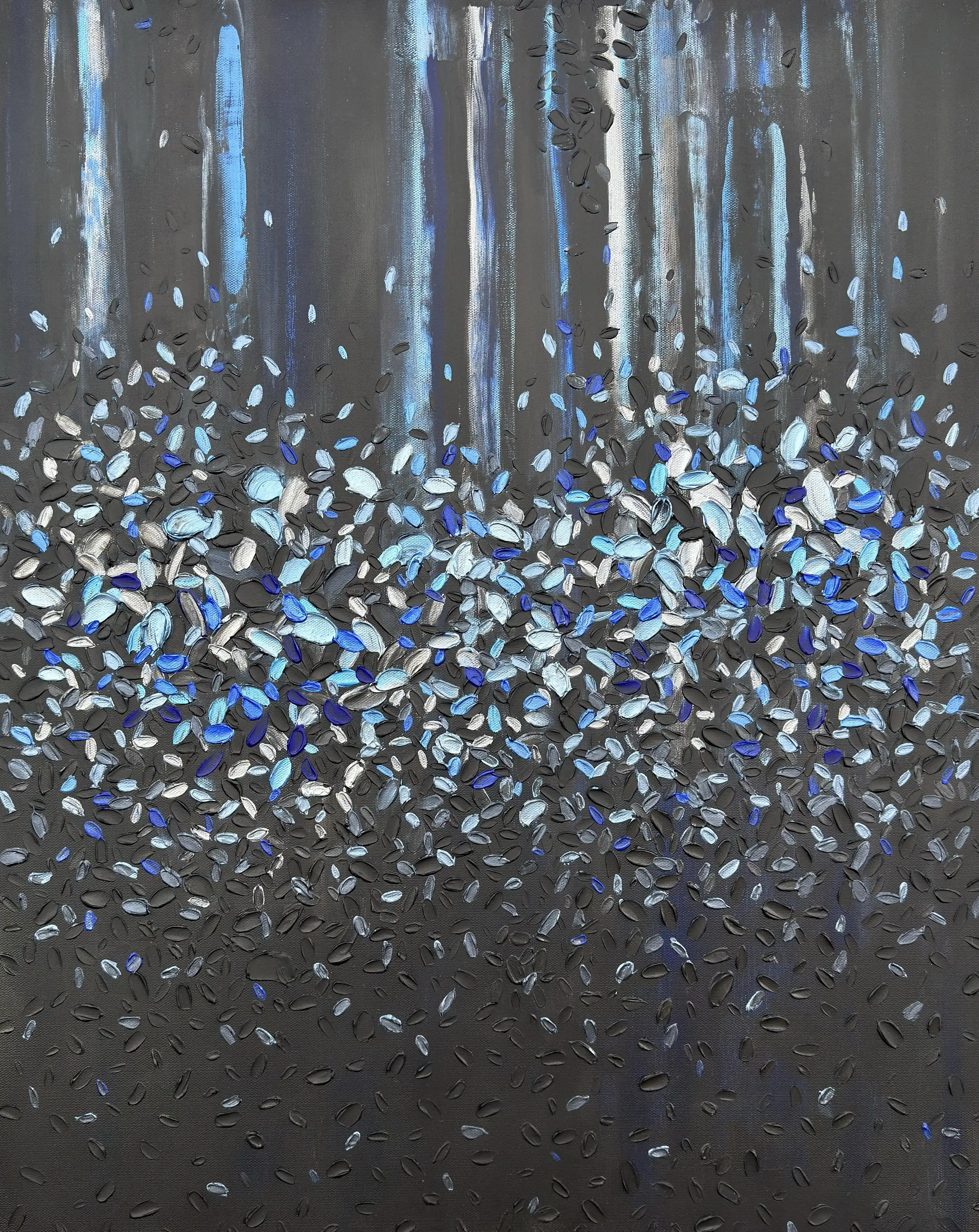 The series reveals colour as a living substance that evolves through movement, layered transitions, and the interaction of hues. Vertical flows and textured structures form chromatic fields with their own rhythm and direction. Colour acts as an active force: it shifts between states, generates new gradations, and defines the dynamics of each composition.